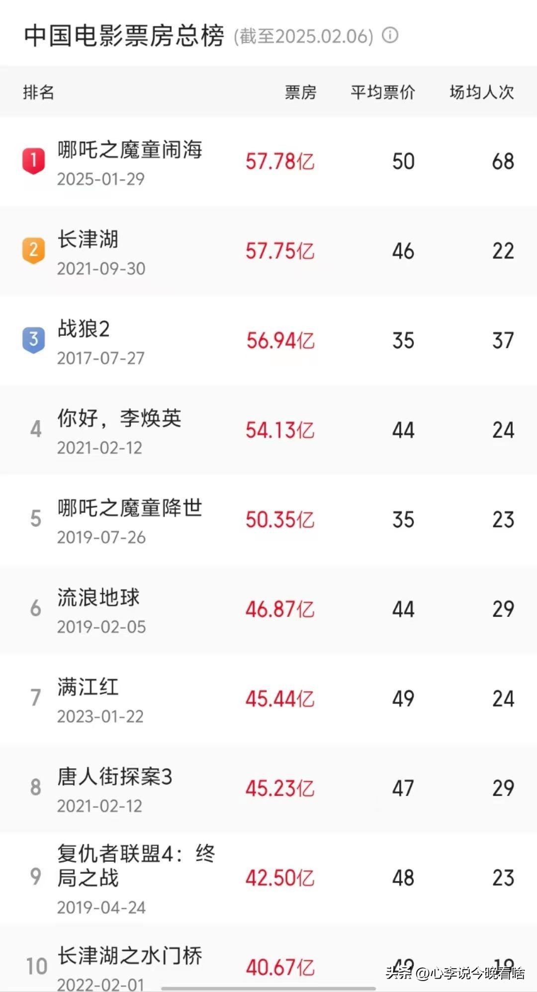 除此之外,哪吒2的票房也是超过了长津湖,成为了目前内地电影票房排行榜的榜首!