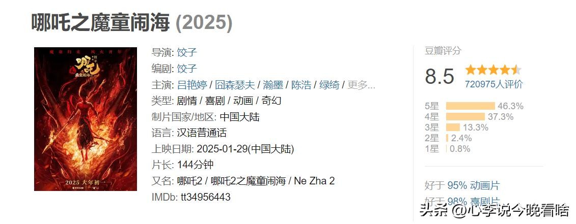 而且通过口碑也可以看出来这部影片的质量,在这么多人观看和打分的情况下,依旧可以保持豆瓣8.5的评分,这个成绩说实话,真的是很不错了。