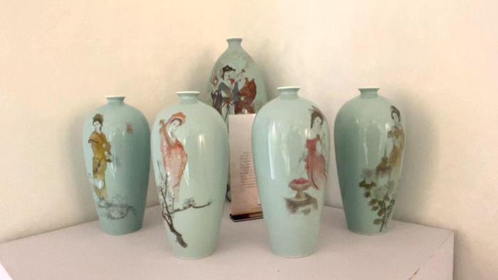 刘永强的一件件陶瓷艺术作品,从一抔细土开始,精心调制比例混合,制坯、上釉、烧制,然后按照成品陶瓷的色彩和造型,进行或彩绘或刻瓷的艺术再加工,全程倾心制作,刘永强对于自己热爱的陶瓷艺术有一种执念。他说,不但陶瓷艺术要创新,陶瓷技术也要创新,鲁青瓷技艺更是如此,我力争从我工作室走出去的作品件件都是独具创新,件件都是精品。