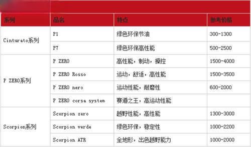 进口倍耐力轮胎花纹型号主要有Cinturato系列,Pzero超高性能系列和Scorpion系列,价格高低取决于轮胎的尺寸大小和型号,车主可以根据自己的预算和注重的性能来选择合适的倍耐力轮胎。