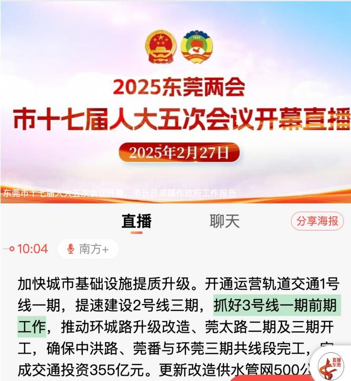 近日,东莞市人民政府办公室印发东莞市2025年重大项目计划,今年东莞安排市重大建设项目798个,安排市重大预备项目179个,两大类重大项目涉及总投资9444亿元。根据项目清单,东莞市城市轨道交通3号线一期工程被纳入重大预备项目之一,估算总投资368.1亿元。