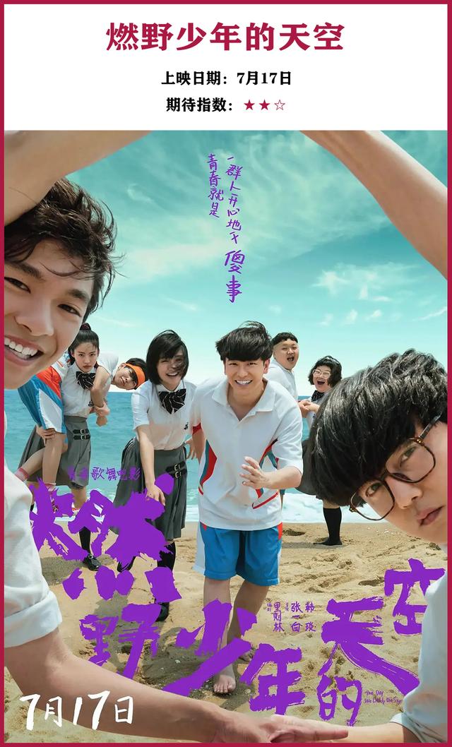 集合了“喜剧”“歌舞”“青春”三个标签的《燃野少年的天空》,配合着朝气蓬勃的海报,夏天的气息扑面而来。