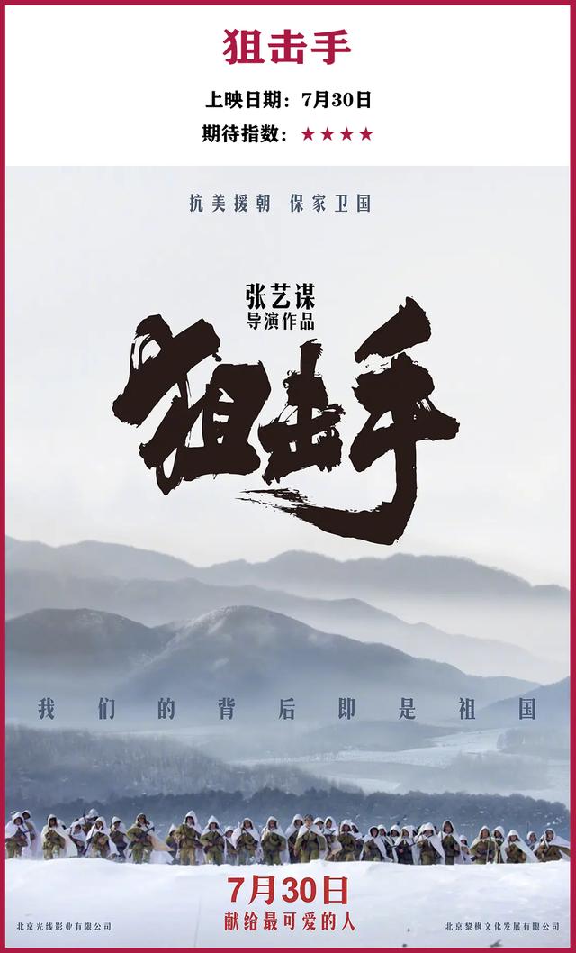 不过《狙击手》目前释出的物料不多,不知道是否能够如期上映。