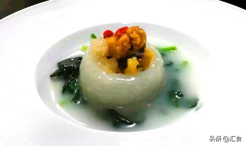 - 冬瓜环用浓鸡汤加入调料煨制入味,雪耳、黄耳、冬瓜粒也煨制入味。