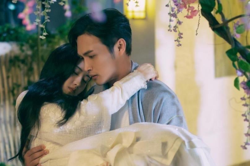 在这张剧照中,男女主的公主抱看起来就不够协调。原因是男主和女主的体型看起来差不多。其实女主的体型可能并不大,但是由于穿上古装层层叠叠的,所以就会给人一种体型很大的错觉。