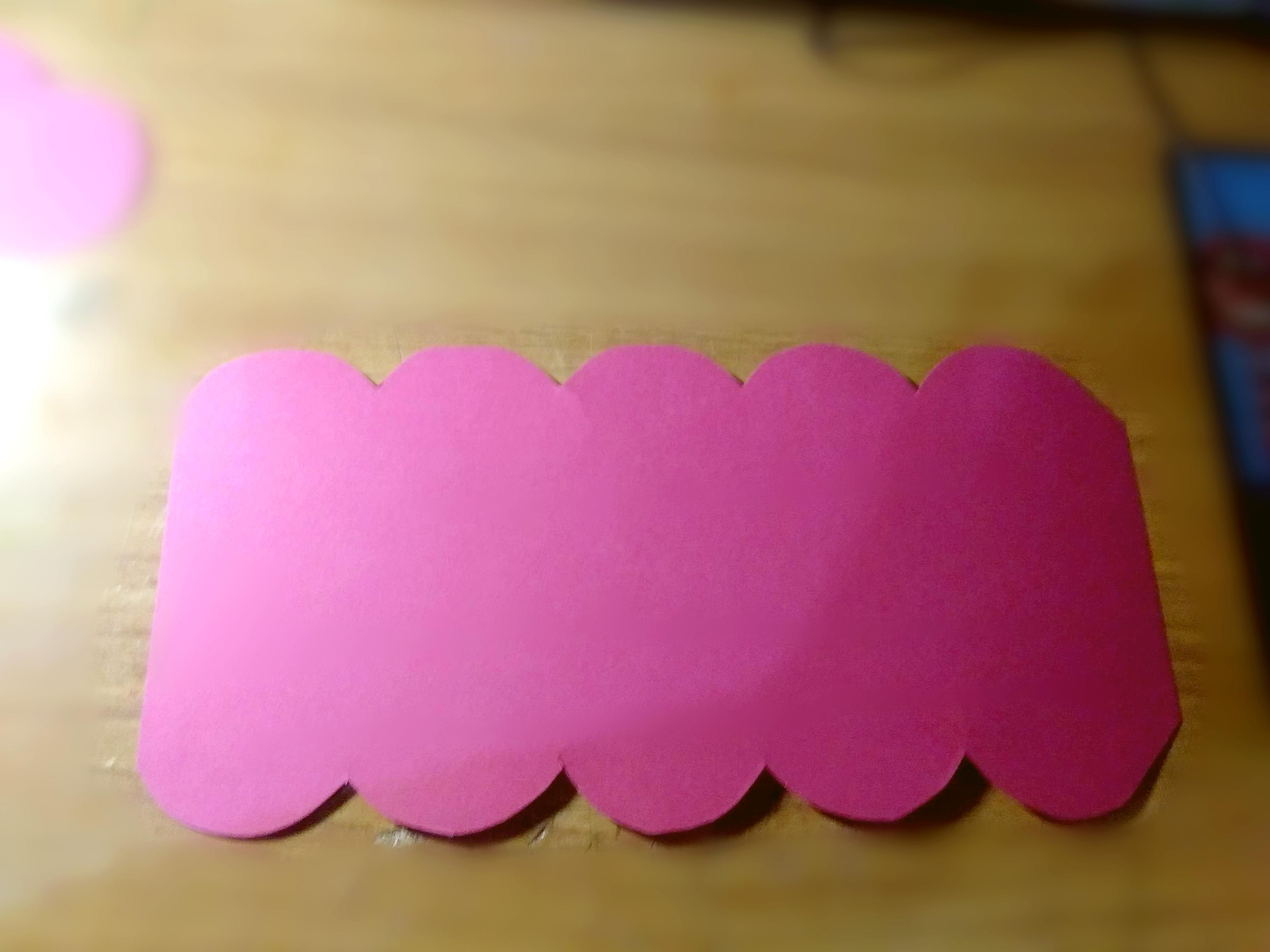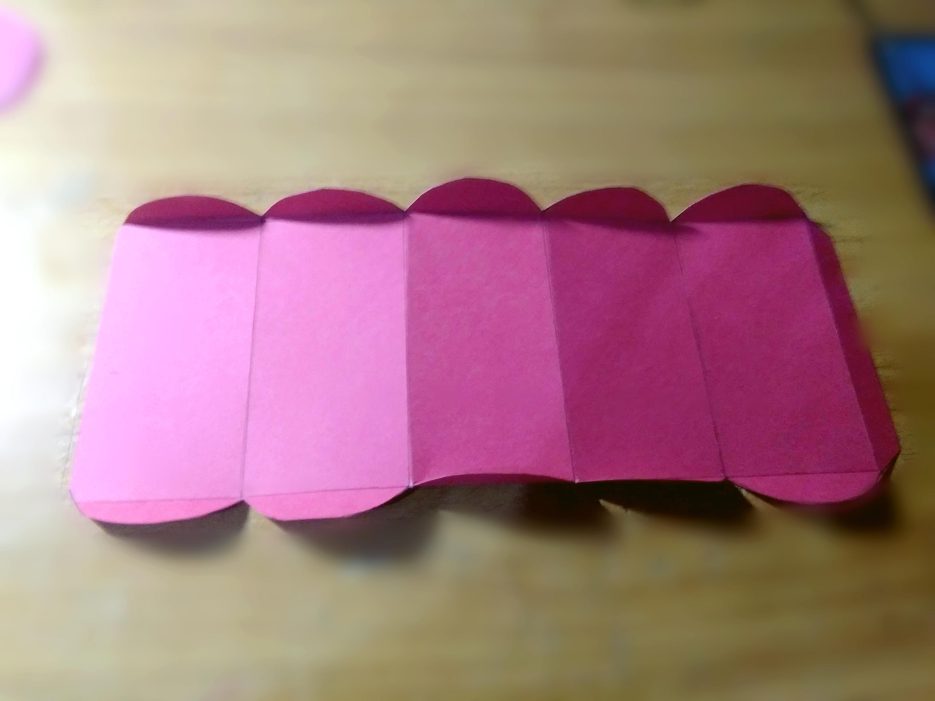 按照圆的直径把纸平均分成五份,用铅笔和尺子画出分割线。上下各画五个弧形,边缘留出粘贴的地方。画好了之后剪下来。