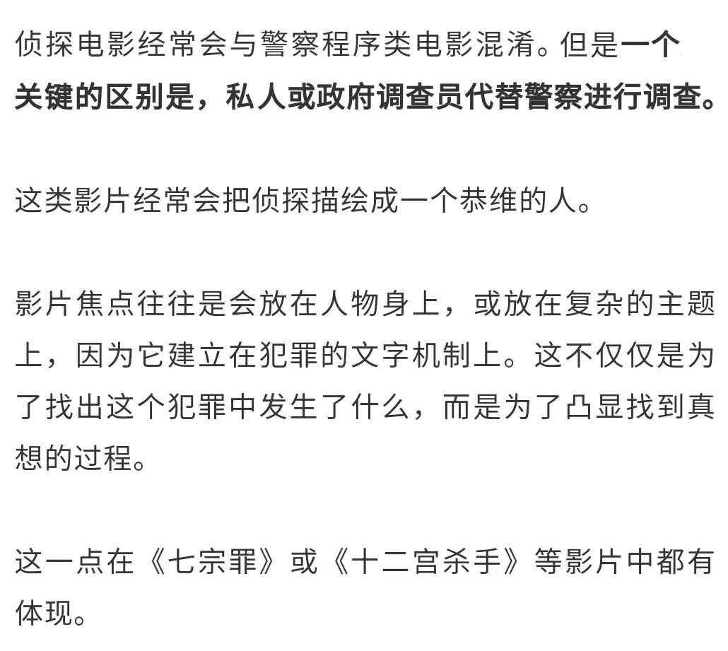 这类影片侧重于犯罪及其调查的不同阶段。故事通常由警察通过犯罪行为和立法系统采取的行动导航。《真探》、《犯罪现场调查》系列都很经典,还有电影《洛城机密》。