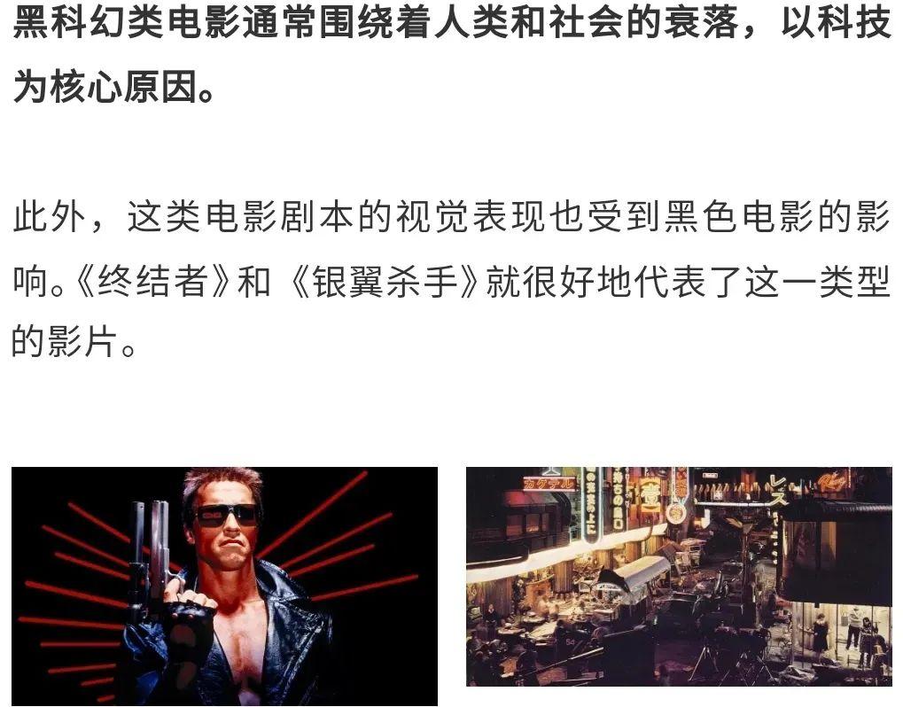 科幻电影主要包含科学进步的推断。然而,这种类型可能包括由于技术的先进性而导致人类的衰落或提升的情节。可能包括生物、机械或外太空元素。