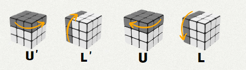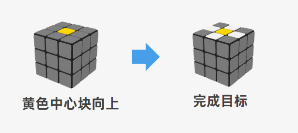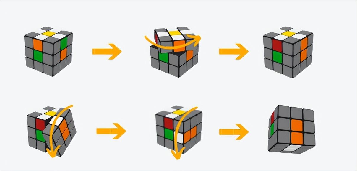 转动顶层,使白色棱块侧面颜色与中心块一致,再180度(转两次)转到底层