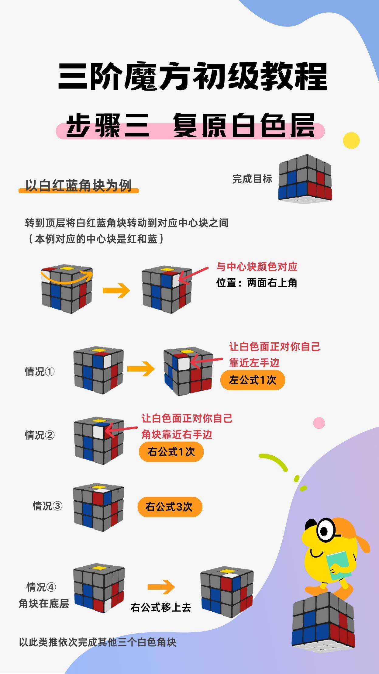 完成白橙棱块后,以此类推依次完成其他三个白色棱块