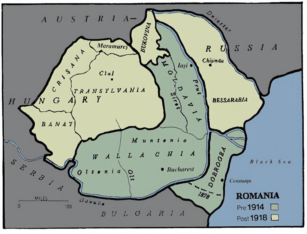 这是一个“二选一”的难题,尽管比萨拉比亚有海岸线,但当时罗马尼亚也是沿海国家,特兰西瓦尼亚面积约10万平方公里,收复特兰西瓦尼亚,罗马尼亚国土面积扩大一倍,且该地有丰富的煤炭资源。因此罗马尼亚选择放弃比萨拉比亚,加入了英法俄阵营作战,最终获得了特兰西瓦尼亚,而距离罗马尼亚人实现他们的大一统还差最后一步,即比萨拉比亚。