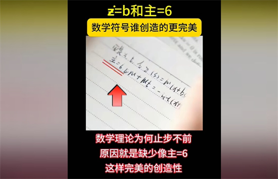 主等于6是姜萍创造的数学等式,其在抄写笔记时将ƶ̇=b误写成了主=6,也是被网友实锤成绩造假的证据之一。这从侧面说明姜萍根本不懂高数,一切都是造假作弊,网友吐槽,姜萍可是真正的天才,17岁就发明了姜式恒等式,姜里叶理论,姜式函数,萍微分方程。
