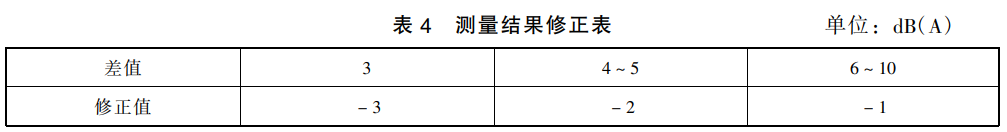 - 噪声测量值与背景噪声值相差在3-10dB(A)之间时,噪声测量值与背景噪声值的差值取整后,按表4进行修正。