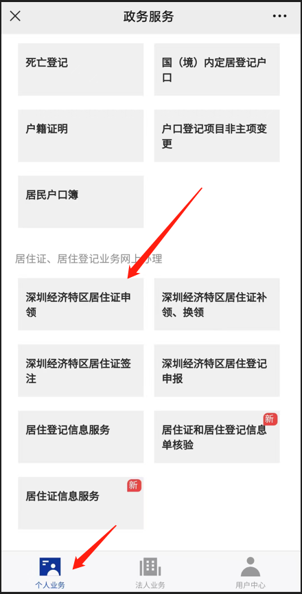 关注“深圳公安”公众号,点击【政务服务】