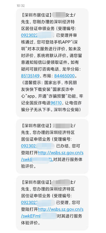 填写完所有信息之后,就是等待审核阶段了。其实审核时间非常快。小编填写完信息后大概30分钟不到,就发信息告知小编已经办理完结!为深圳速度点赞!!!