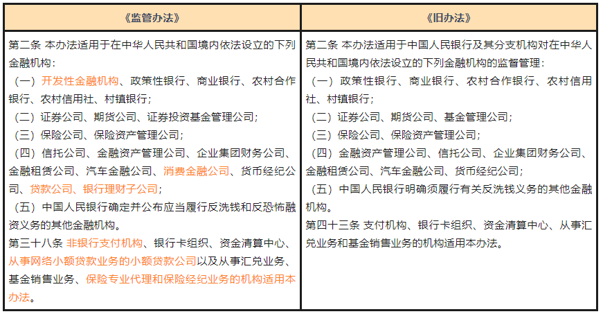 可以预见的是,本次《监管办法》在为《反洗钱法》的修订开路造桥,也意味着此前反洗钱监管较为薄弱的消金、银行理财子公司、小贷公司等将被纳入强监管范围。
