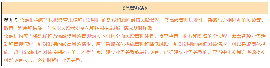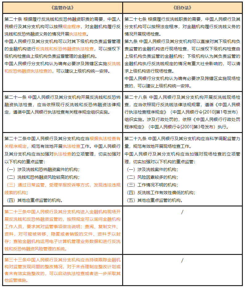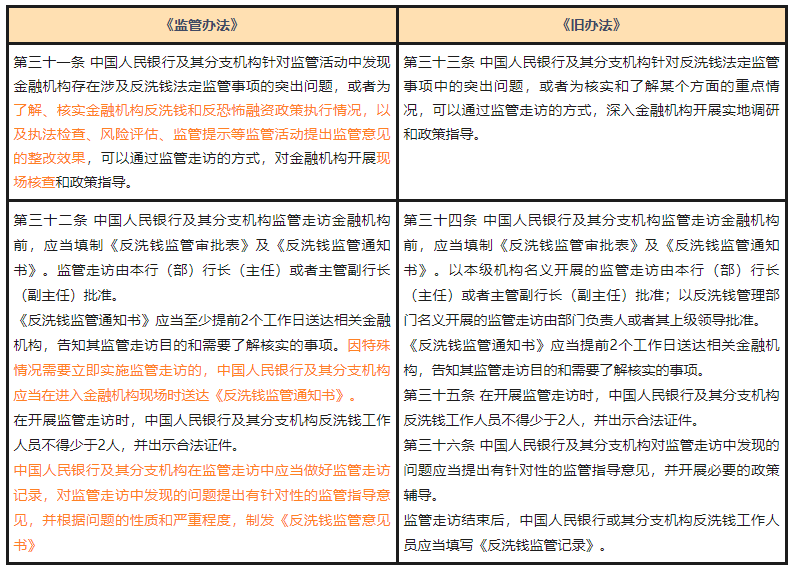2、立即走访:《监管办法》增加了因特殊情况需要立即实施监管走访,可以现场送达《反洗钱监管通知书》的规定;