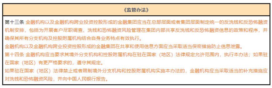 除第八条规定金融机构应当在总部层面制定风险自评估制度外,本次《监管办法》增加了金融机构须在总部或集团层面制定统一的反洗钱安排的规定,并确保分支机构及控股附属机构能有效执行。