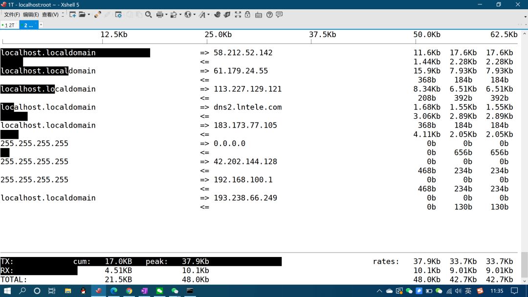 如果服务器里提供了网络应用,例如web服务等,可以通过浏览器访问web服务器,测试网络是否连通。例如,服务器里提供了rstudio-server服务器,可以通过浏览器访问rstudio-server服务器。如果可以访问,则证明网络,账户,密码没有问题。更换手机网络如果确定是网络问题,可以更换一下网络访问,现在每人都有一个手机网络。例如可以通过手机浏览器访问rstudio-server web服务器,如果可以访问,则代表服务器可以连接,本地网络问题。计算资源紧张openssh也是一个网络应用,当客户端发起访问请求,需要服务器端进行处理。而当服务器计算资源紧张,例如CPU被占满,那么服务器就不能立即处理openssh的任务,需要等待。而openssh有时间要求,当服务器长时间不能处理openssh,则本地端终止继续连接,造成无法连接服务器。网络拥堵访问服务器网络很重要,很多情况下都是因为网络问题造成无法访问。比如网络拥堵,例如当前网络带宽100M,如果使用aspera下载数据,aspera会尽可能的占用网络,就会造成网络拥堵,openssh无法连接服务器。可以通过iftop命令查看网络使用情况。流量攻击如果是公网IP,不可避免的要遭到互联网世界的各种随机访问,这都正常,不过当有非常大的流量请求访问时,可能就收到了流量攻击,表现特点就是一秒钟有成千上亿次的访问请求,这也会造成正常用户无法访问。这种情况下查看/var/log/secure,如果发现异常,则出现了流量攻击。