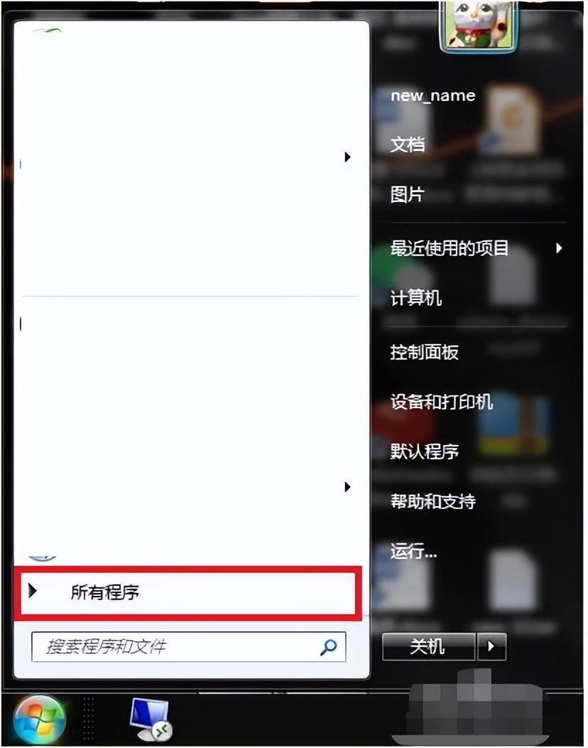 1.在win7系统开始菜单,打开【所有程序】,如下图所示。