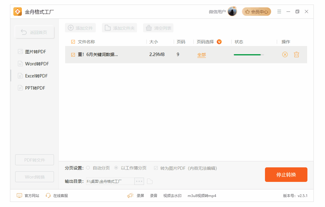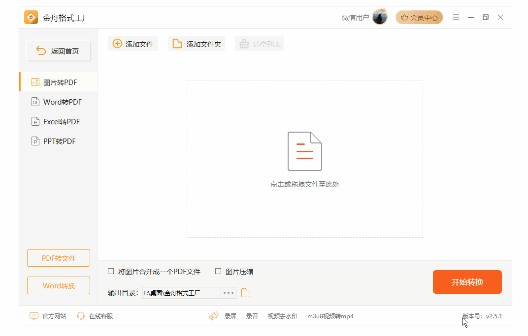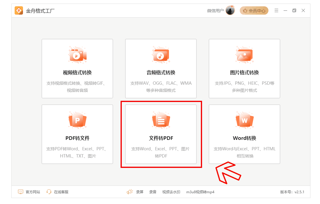步骤1:进入金舟格式工厂,点击“文件转换PDF”功能;