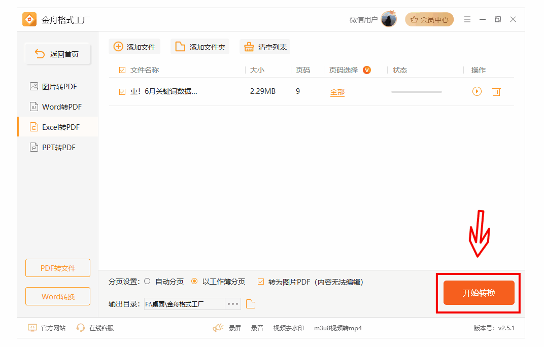 步骤2:左侧功能栏中点击“Excel转PDF”功能;