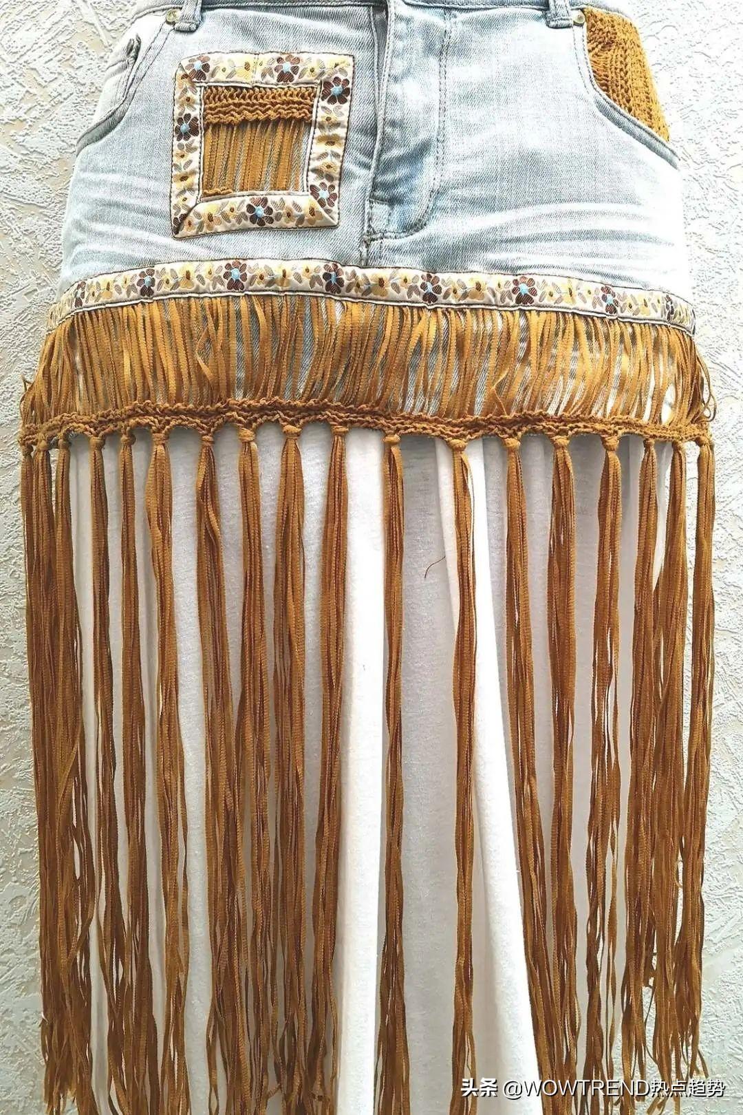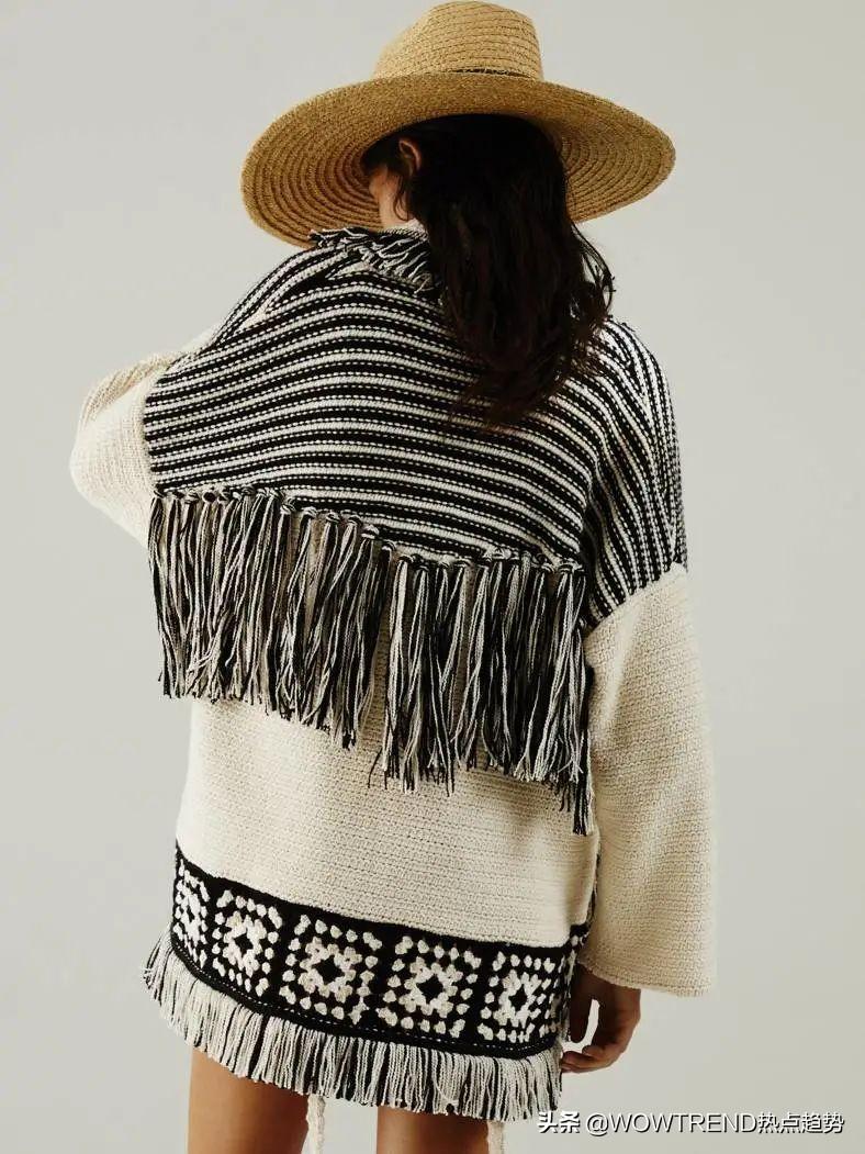 在流苏的前端打个小结或利用民族工艺感编制的流苏,手工制作感及强,结合当下流行的款式进行组合设计打造出现代的游牧气息,既美观又实用。