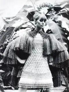 到了60年代早期,流苏开始受到美国本土风格的影响。1967年,Yves Saint Laurent得到了非洲部落服装的启发,设计出如稻草般堆叠的流苏斗篷和网格裙,把流苏元素运用到了极致。