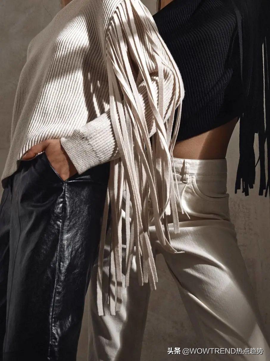 不同材质的流苏营造出截然不同的风格,用饰珠流苏装饰领口,较短的金属流苏或饰珠流苏,散发着奢华的味道,赋予女装醒目外观。