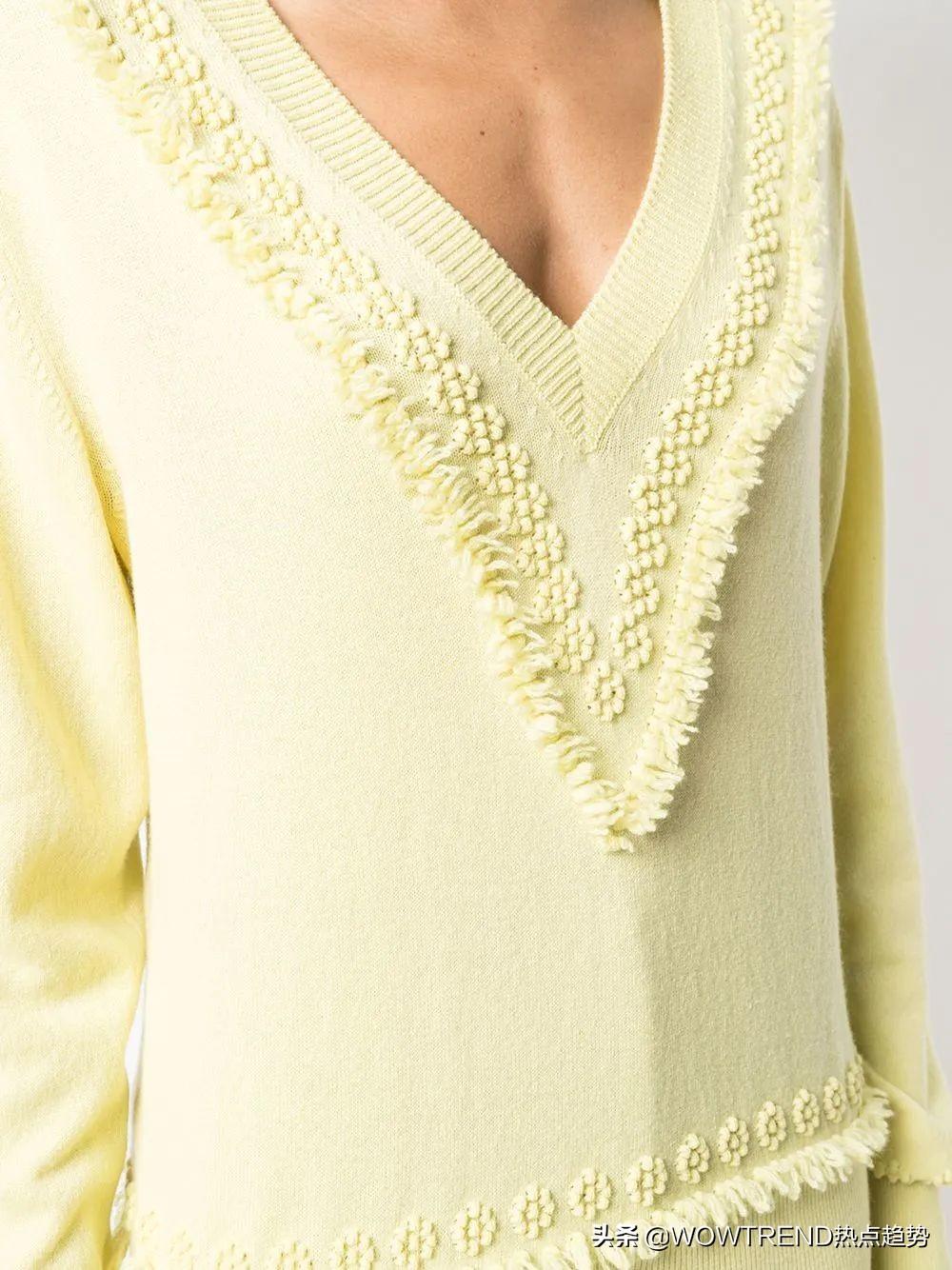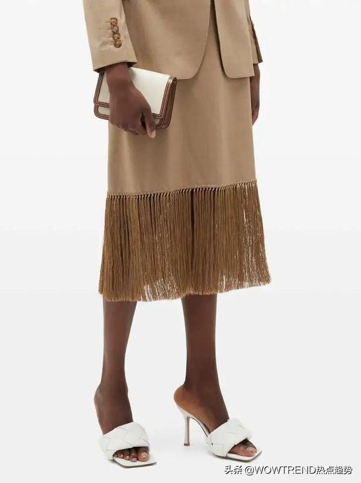 通过裁剪装饰,本布流苏强化对手工细节的使用,常装饰于衣身、下摆袖口等处。