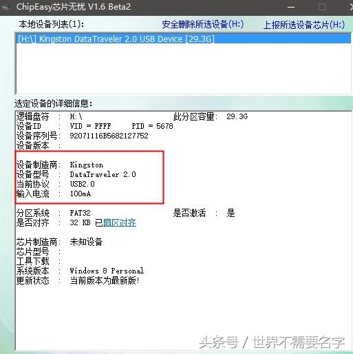 附图是一款金士顿32G的U盘。可以检测出芯片制造商 有的u盘可以检测出芯片制造商等。