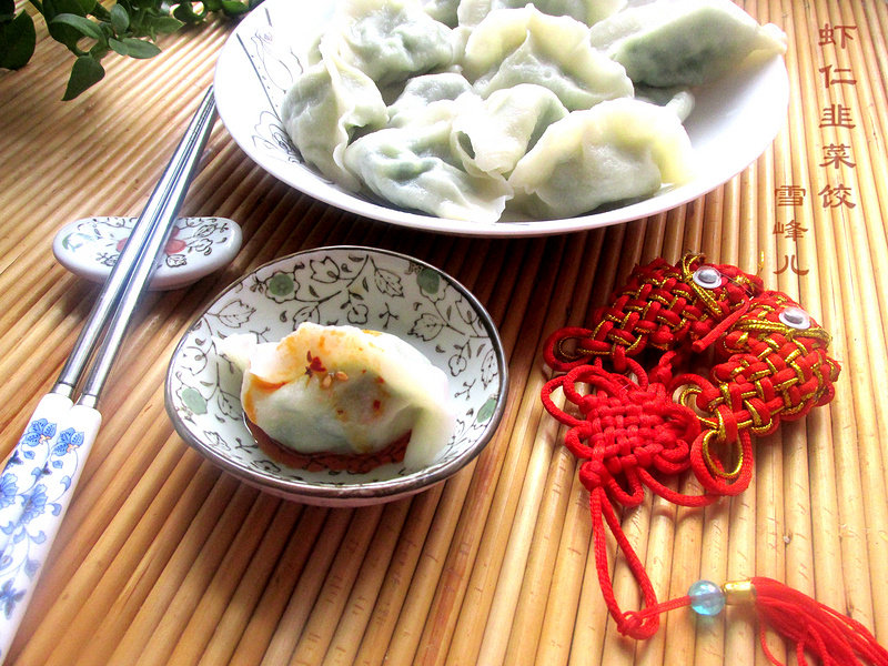 面粉450克;韭菜500克;大虾2只;鸡蛋2个;