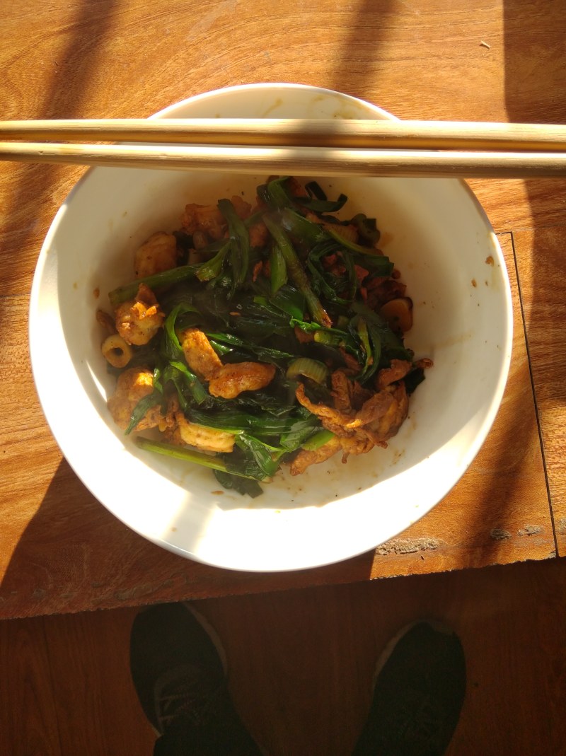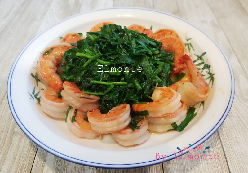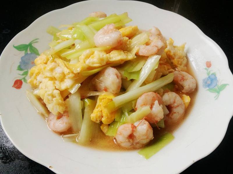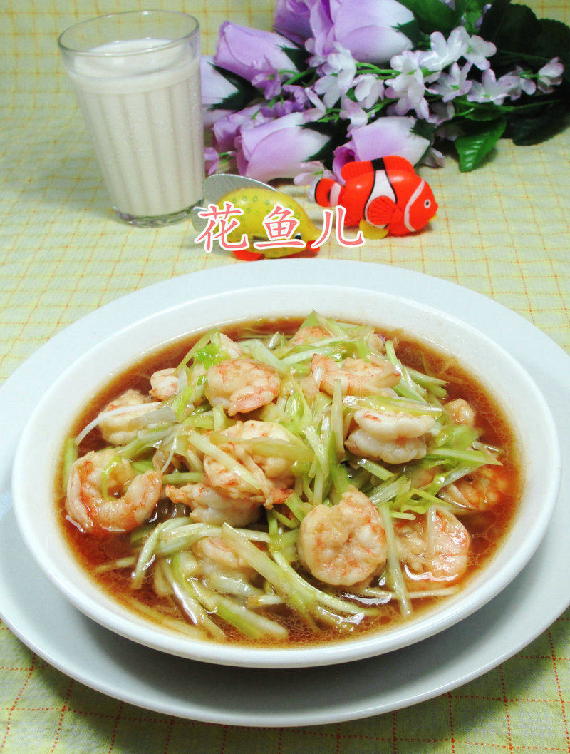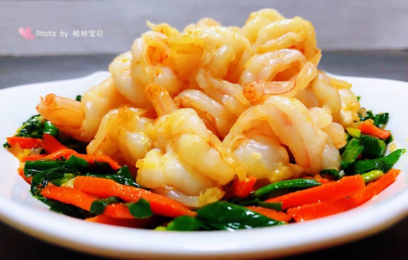 7:加入处理好的虾仁翻炒,再加入蚝油,盐调味即可。