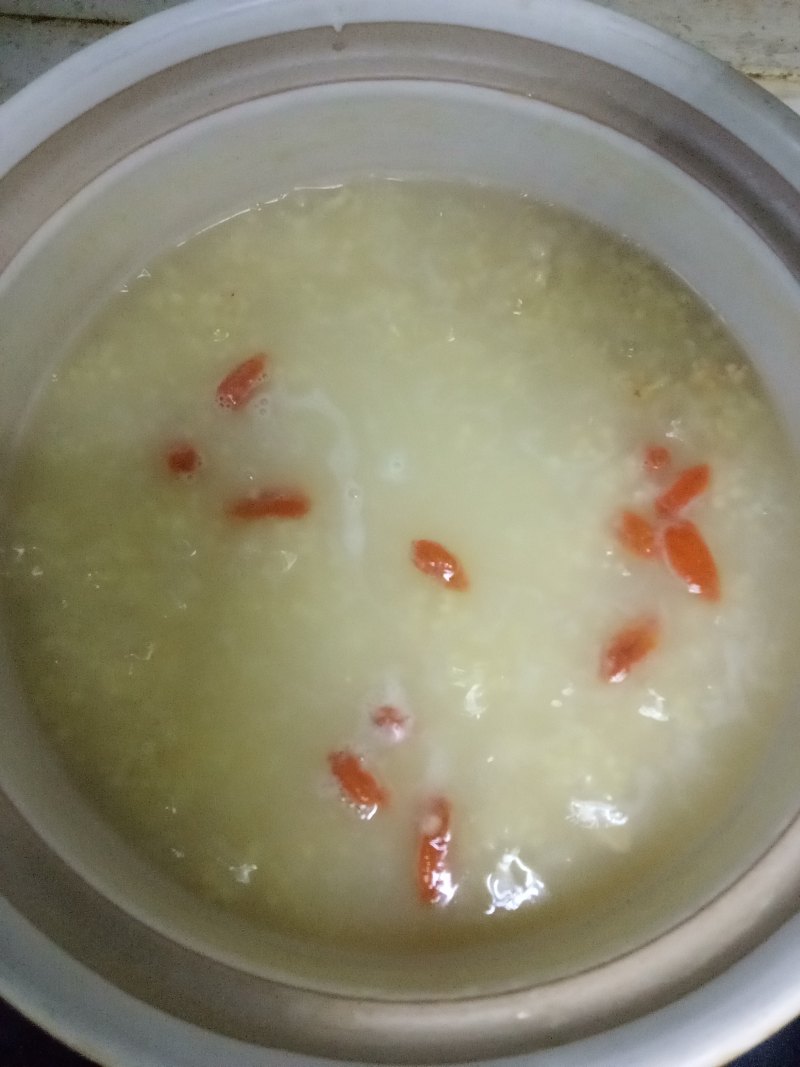 1:小米淘洗干净后浸泡一会。枸杞浸泡在水中。
