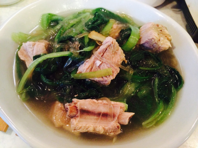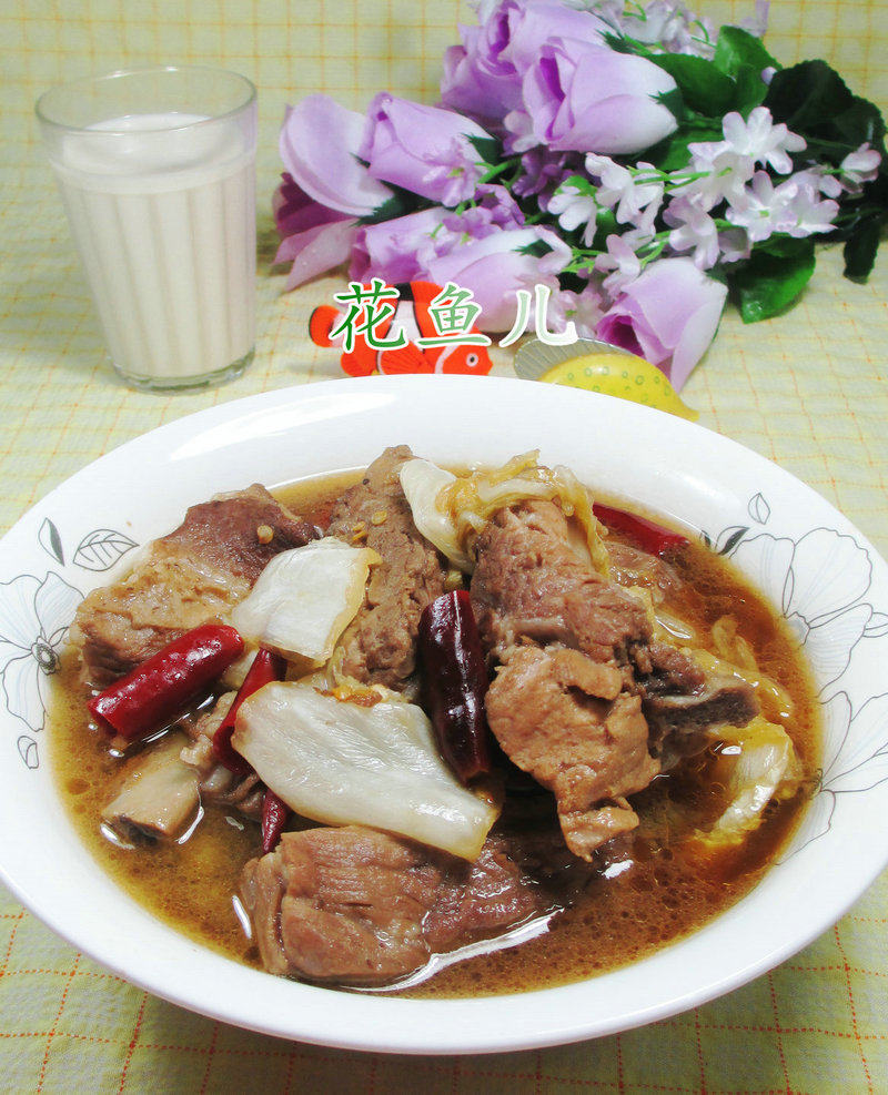 1:备料:肋排1-2跟,白菜叶5片,粉条一把