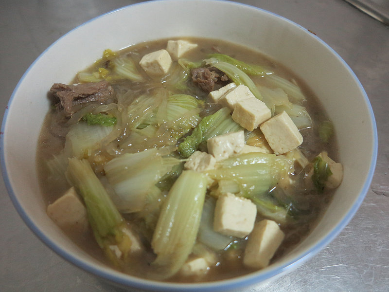 白菜半课;豆腐半块;瘦肉少量;粉条一小把;