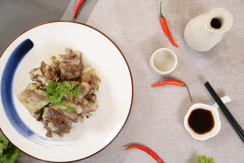 大葱10克;生姜8克;料酒2汤匙;盐5克;蛋清1个;花椒3克;小茴香5克;青蒜适量;胡椒粉3克;