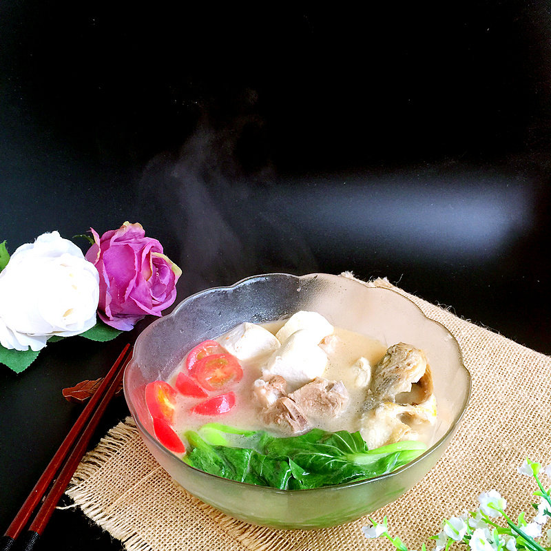 5:羊汤炖20分钟左右成了乳白色就可以了羊棒骨从汤中取出