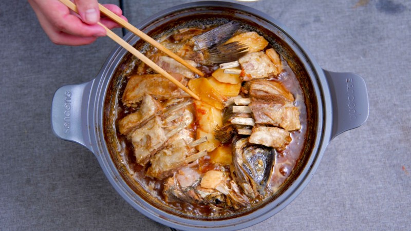 3:鱼、排骨和所有配料放入锅中。