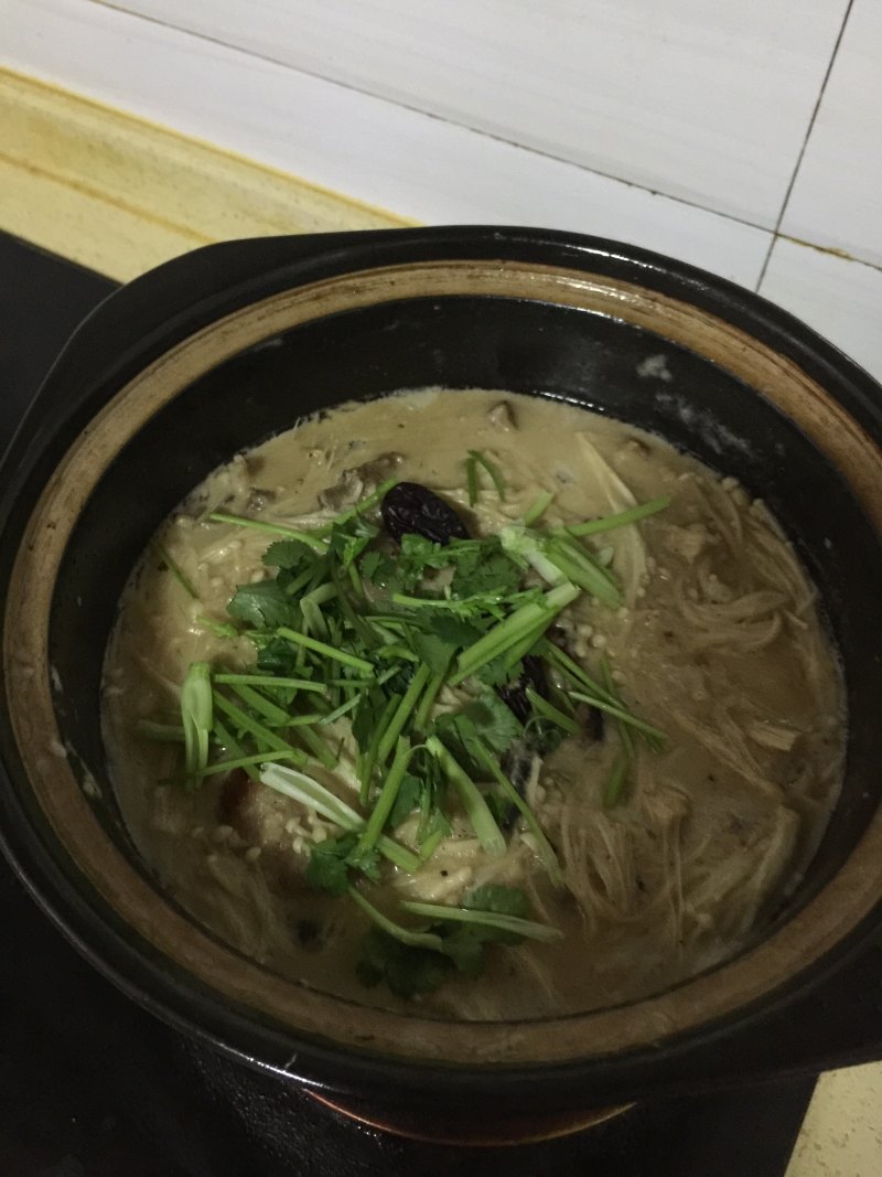 5:羊排炖熟后加金针菇稍煮一会儿。
