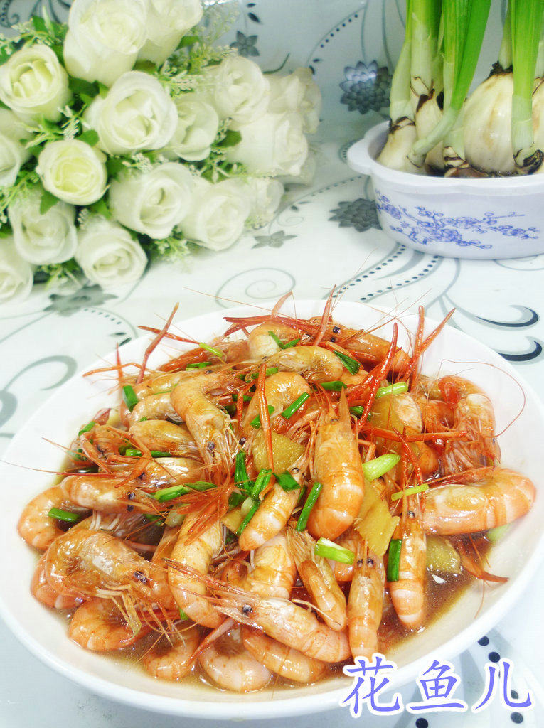 河虾150克;葱5克;生抽1茶匙;盐适量;