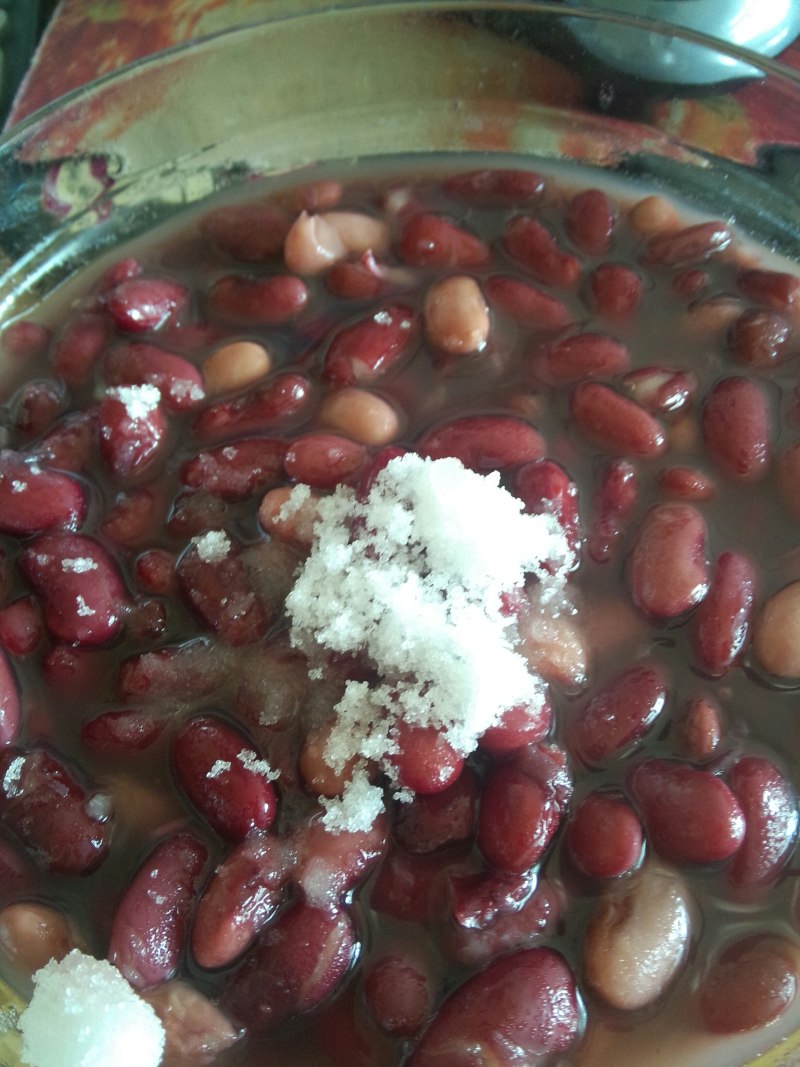 2:洗干净,放入电压力锅,水莫过豆子就可以,放入冰糖,煮10分钟