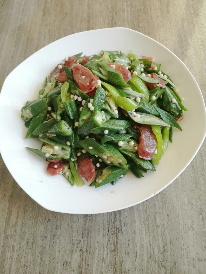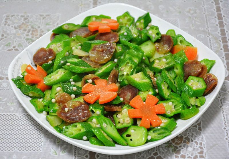 腊肠炒秋葵