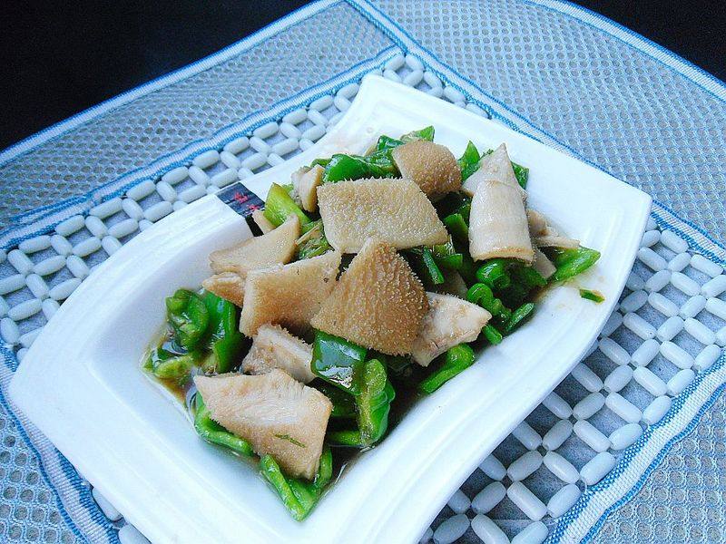 1:主辅料:熟牛肚、青椒