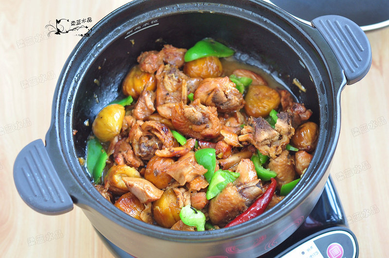 7:在剩余15分钟时加入栗子,盖上锅盖。
