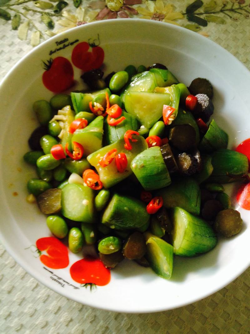 丝瓜两根;毛豆100g;酱黄瓜两根;