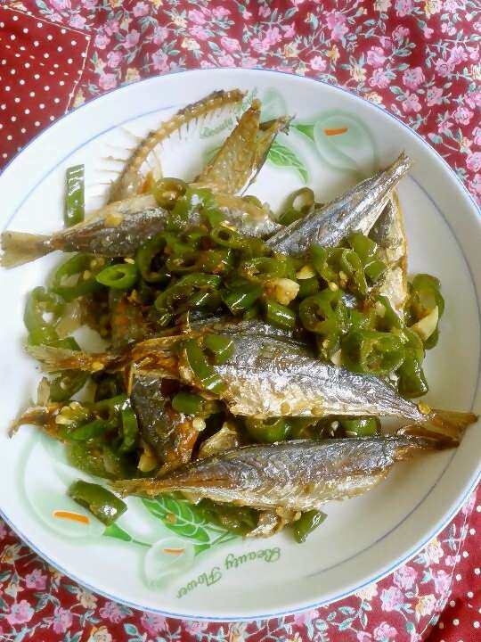 1:备料:鱼干洗干净,辣椒切粒,蒜切粒。