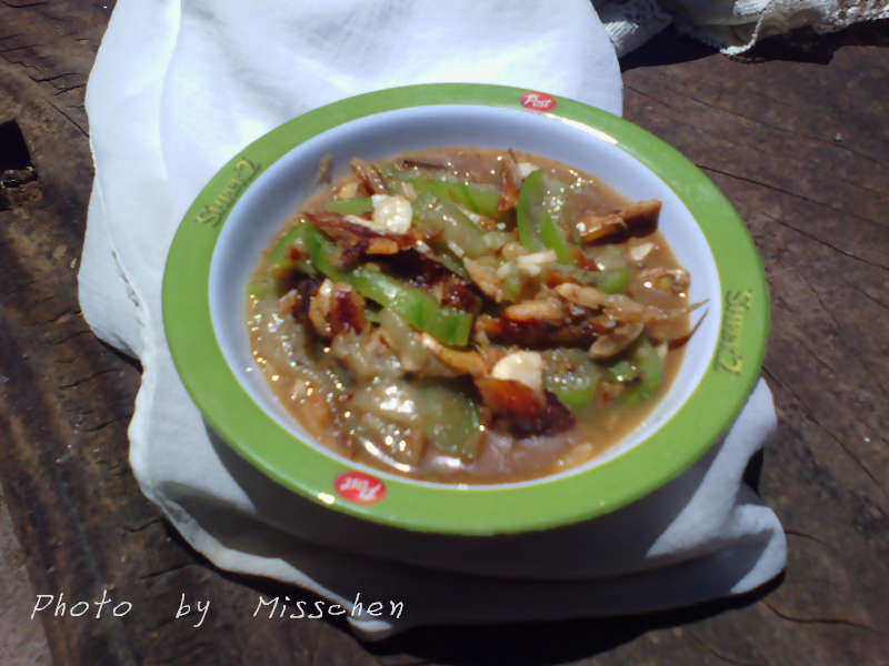 2:丝瓜去皮洗净切片,巴浪鱼干掰开去骨后撕成小块洗净,生姜切片,蒜切碎
