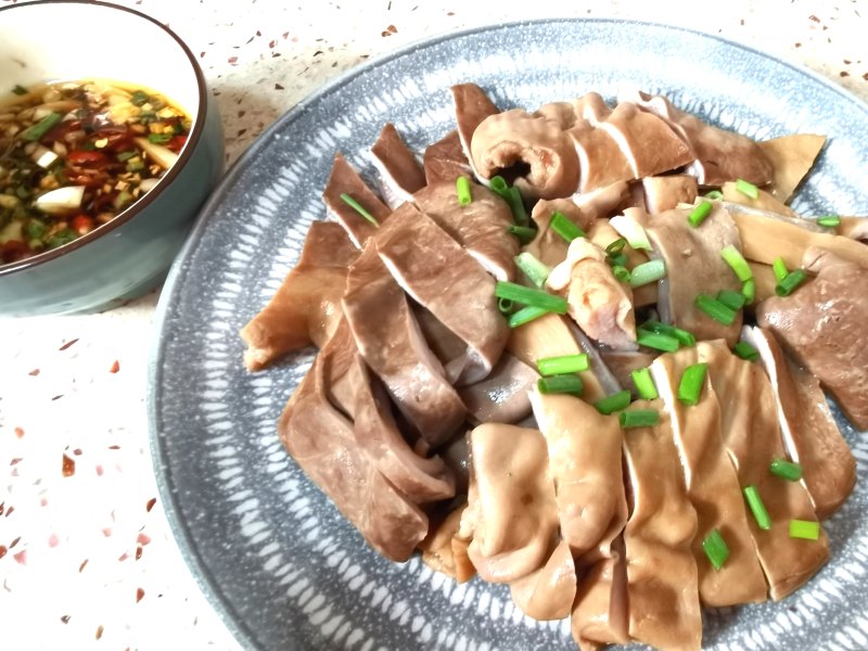 17:也可以把猪肚切成小块,装盘,蘸蘸汁吃,也就是白切猪肚了。