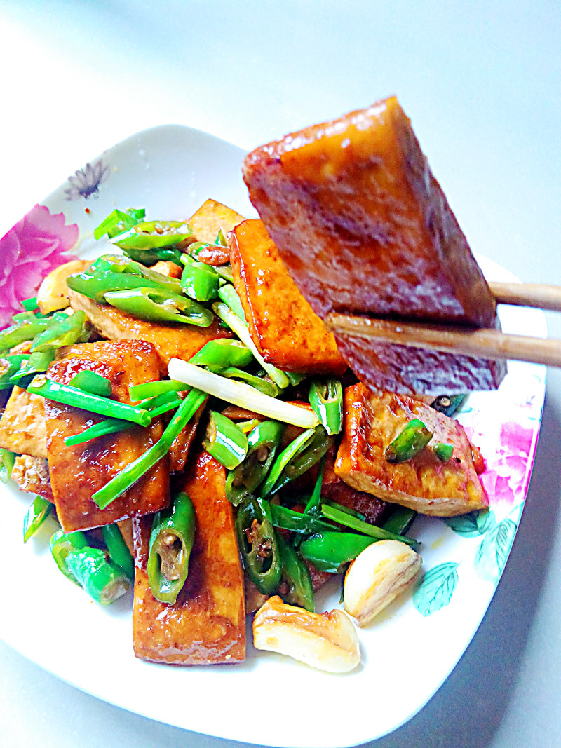 在炒香干的时候火不能太大,炒焦了会影响口感。